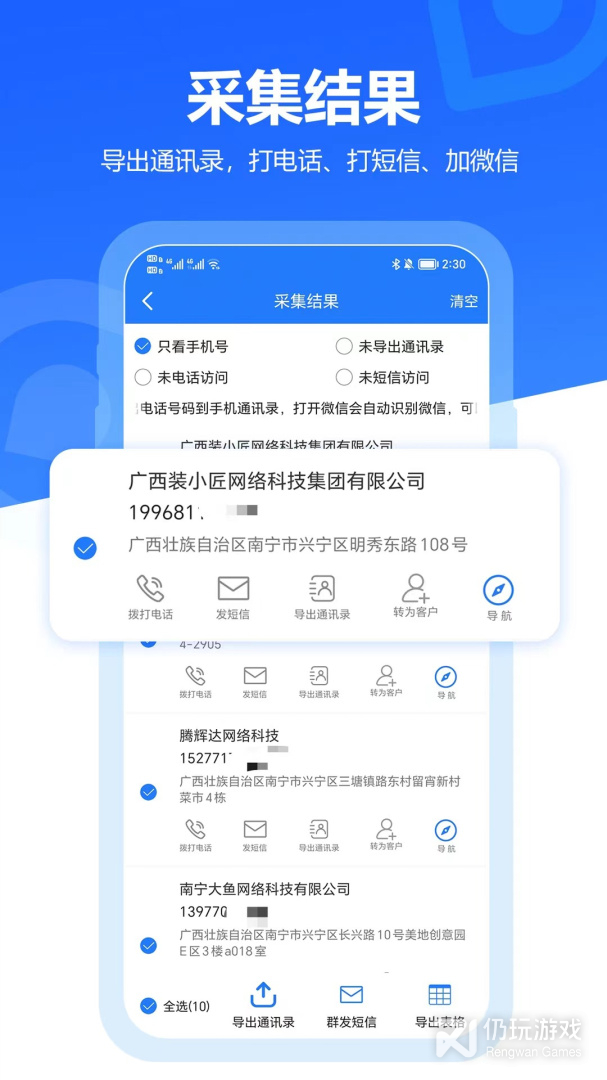 实时推送最新推广,能够直接选择拨打电话或者复制信息,支持逐个选择