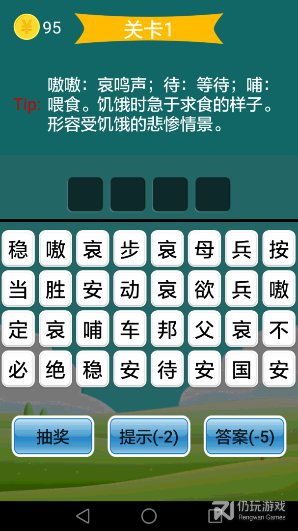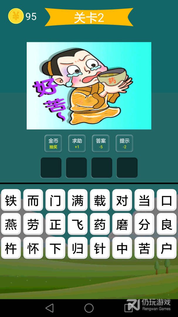 进入猜成语板块,根据图片提示选择正确字组成成语;