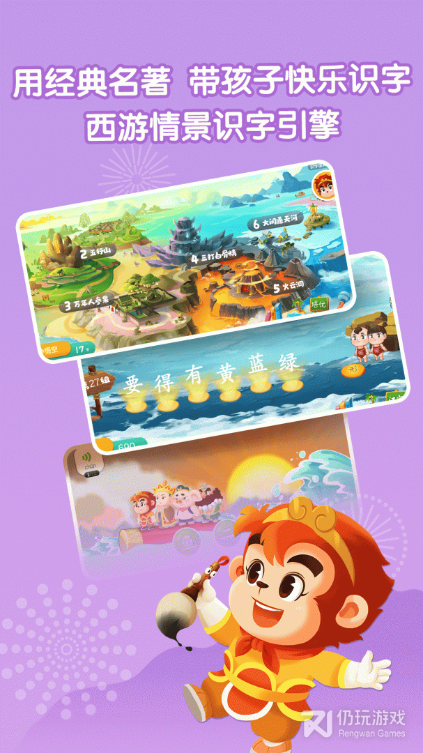 3、结合儿童熟悉的《西游记》经典场景,让儿童在游戏中快乐地认识汉字