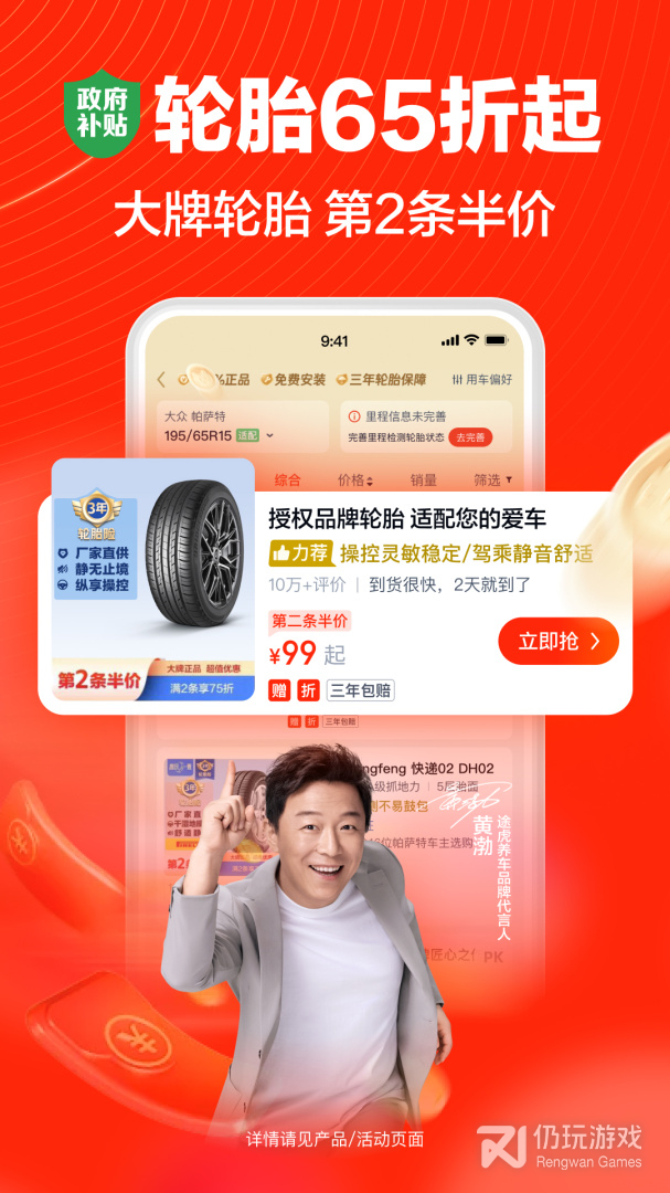 精确适配的正品轮胎:输入车型 自动适配,400城市万家门店免费安装。购买任意轮胎,即可在途。