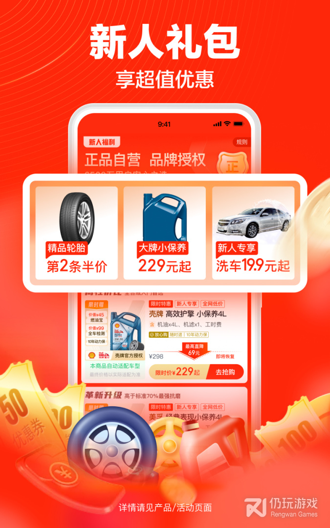 新老用户可享受“天天领红包”, 各种轮胎券、保养券、车品券随机抽取!天天都能领。