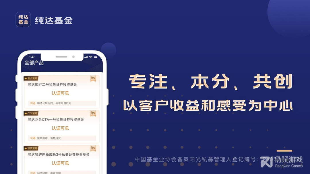 纯达始终秉持“专业、本分、服务”的核心价值观,以“为投资者创造长期价值”为自身使命,致力于成为最值得投资者信赖的资产管理服务平台。