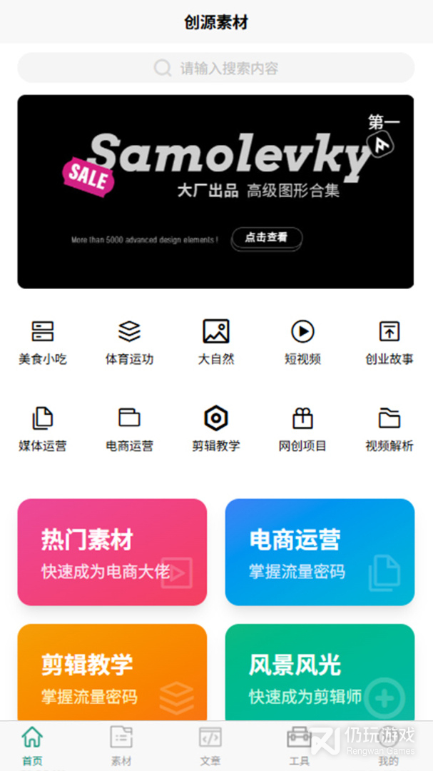 1、创源素材下载,这是一款专门为新媒体从业人员打造的素材库软件,软件功能丰富,除了有各种免费视频素材分享之外,软件内还有诸多实用小工具,你也能在这里购买各种实用的素材包