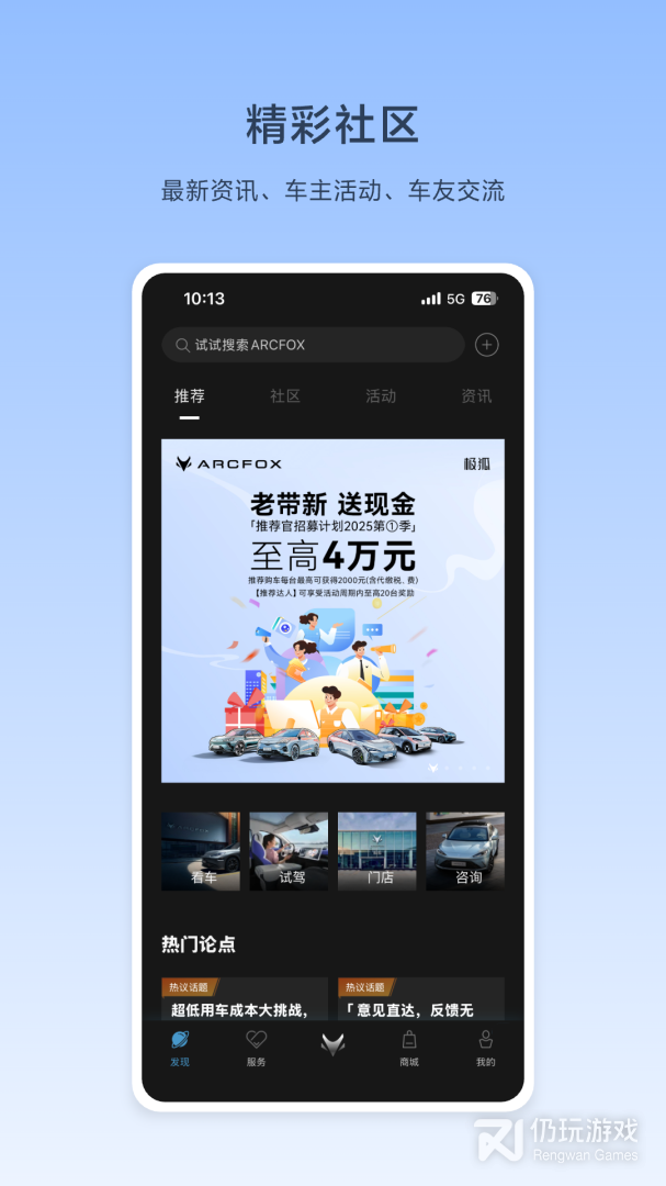 2、ARCFOX极狐是汽车服务平台,平台拥有探索,遇见,愉悦等等板块内容,可以给予用户更棒的汽车生活体验