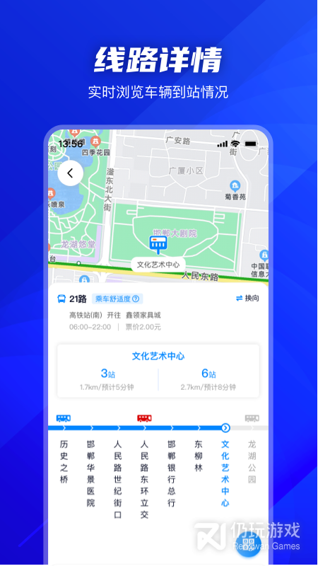 6、实时公交:紧密连接公交公司的运营计划,自动定位您的当前位置,为您找到*近的公交站,告诉您*近的车到哪啦