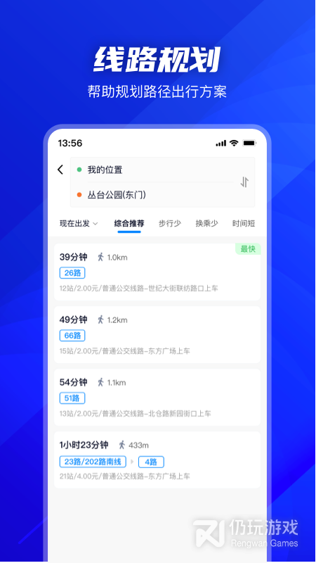 2、拥有强大的路线查询及规划能力。总能给出最佳公交线路及少换乘,少步行等备选方案