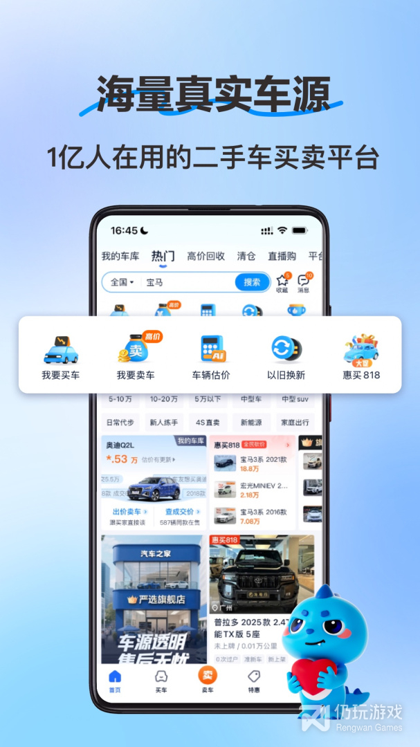 1、二手车之家是由汽车之家推出的二手车交易平台,每天近万条车源发布,合作商家达到15000多家,覆盖全国300多个城市,绝对真实有效地二手车资料,二手车之家是你购买二手车的不二之选。