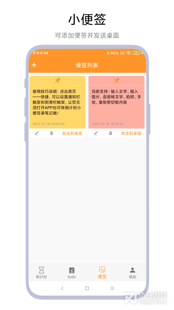 2、在这里拥有倒计时和便签功能,随时在便签列表里面查看各种内容,并且可以编辑、删除,还可以发送到桌面上使用,支持用户开启倒计时提醒服务,不错过任何一件重要事情,适合多人群使用,来即可安装哦
