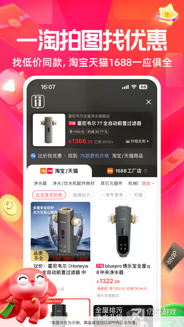 2、一淘同步淘宝/天猫可返利的海量商品,覆盖面更广,返利更多,每天用户在一淘可获得上亿返利