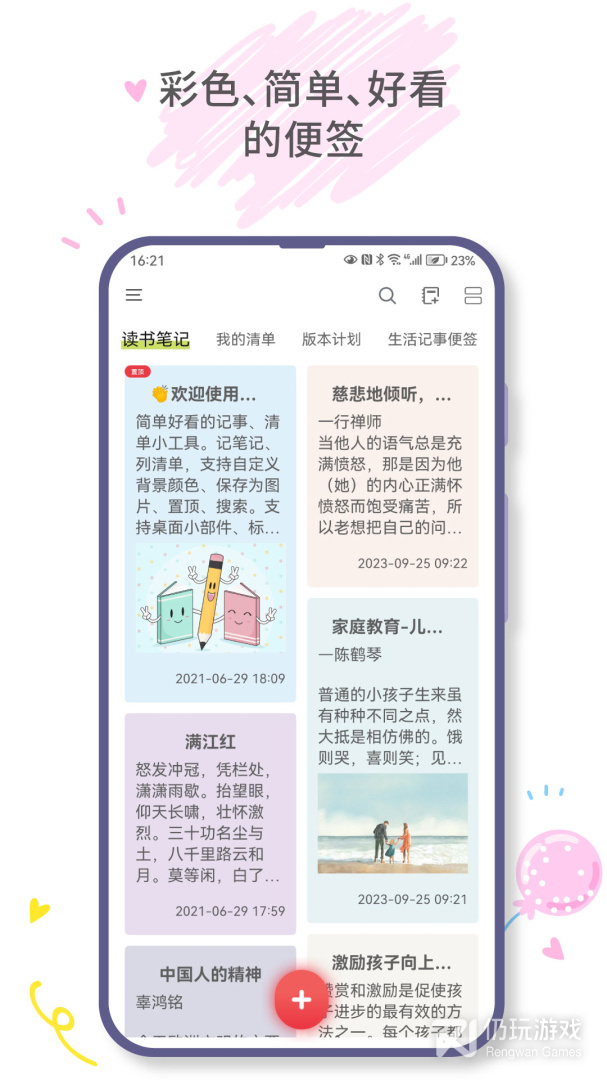 3、小清新式的彩色卡片式展示每一个便签或清单,清晰容易辨认,让您的日常事物井井有条