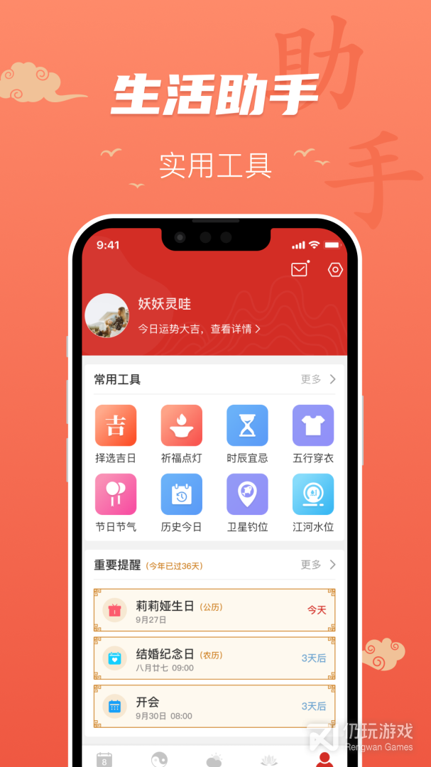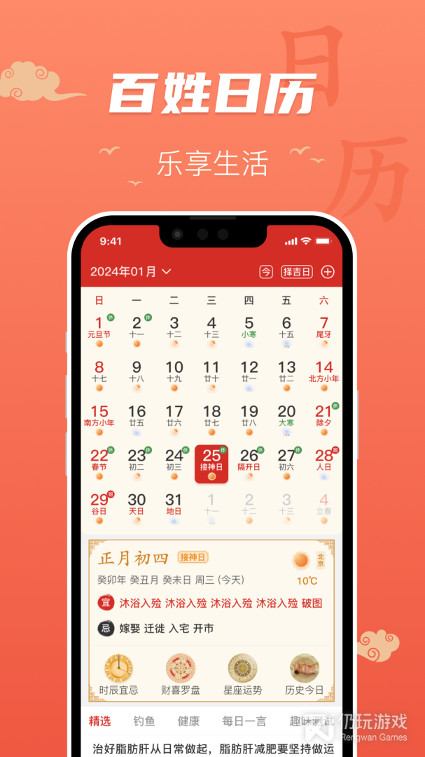 1.日历:农历、节日节气、放假信息、每日运势、历史上今日发生的大事件、养生好文一目了然,让每天更有意义。