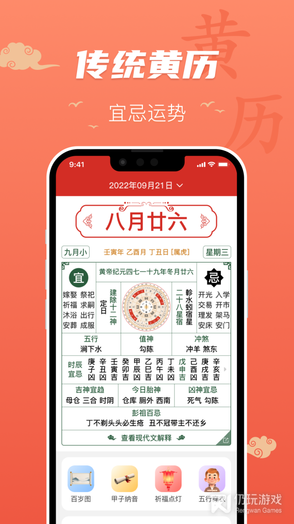 2.黄历:黄历宜忌、吉日查询、方位罗盘、五行冲煞(附现代文解释)...择吉必备,弘扬传统文化。