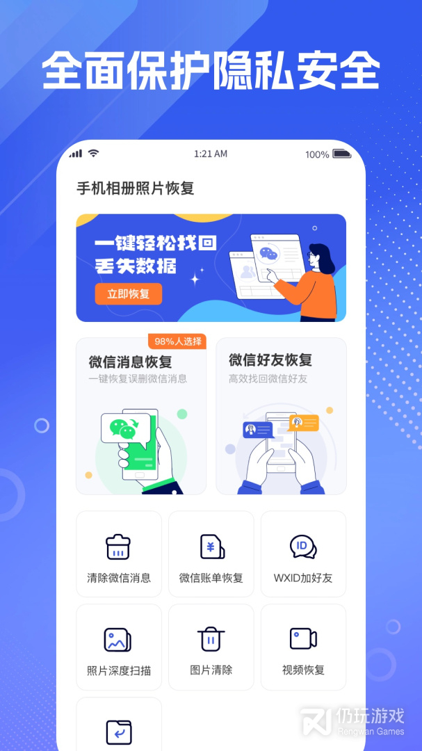 一键完成扫描和恢复,智能化操作,30秒完成手机数据扫描。无需注册登录,极速扫描,操作简单。无需电脑配合,无需专业人员指导,一键扫描即可恢复照片至相册;在恢复过程中不会保存用户任何图片信息,保护用户数据隐私安全。