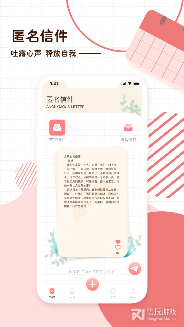 用图片、语音、文字描绘今天的故事吧。文字排版简单够用,位置标记,时刻记录。你的心事,是我们和你一同守护的秘密。