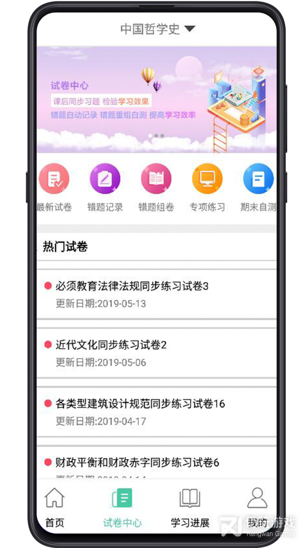 最新试卷功能,app每天为用户推荐最新的试卷;