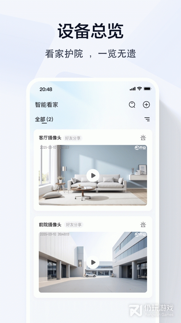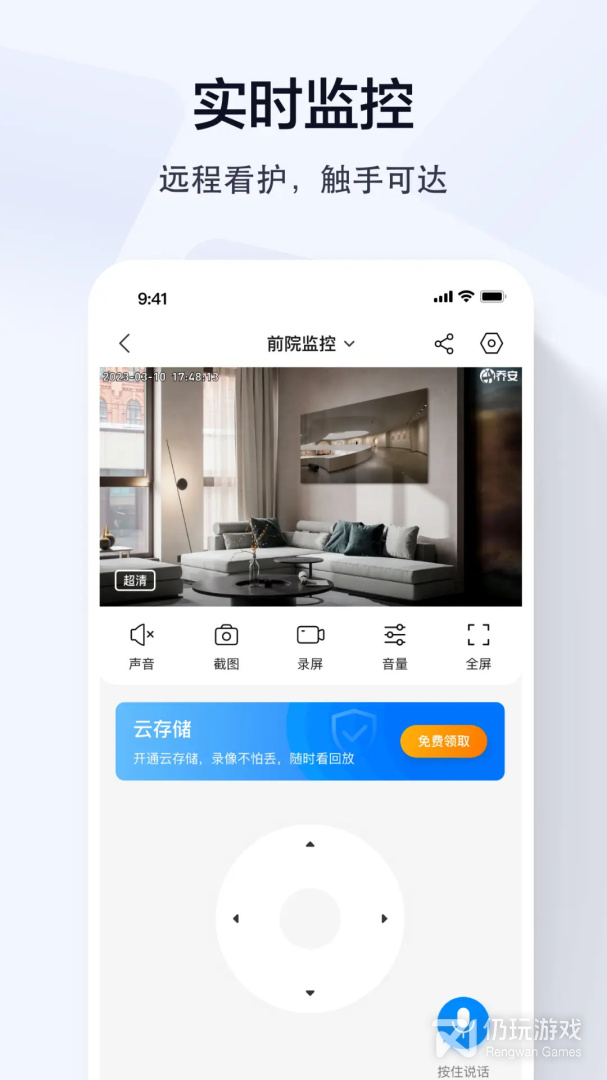 3、看店看家:随时查看家里、商铺、办公室等场所的实时视频、云端录像,让您轻松管理办公,随时护家安全,实现远程关爱、智能陪伴,分享精彩生活