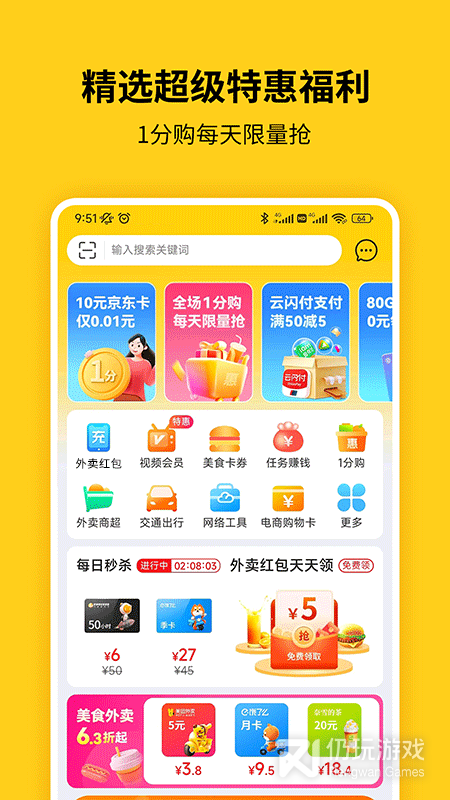 2、虚拟充值全覆盖:话费流量、视频会员、电商购物卡、摩拜骑行卡、加油卡、腾讯QQ、游戏、购物、娱乐旅行等充值购物实惠根本停不下来