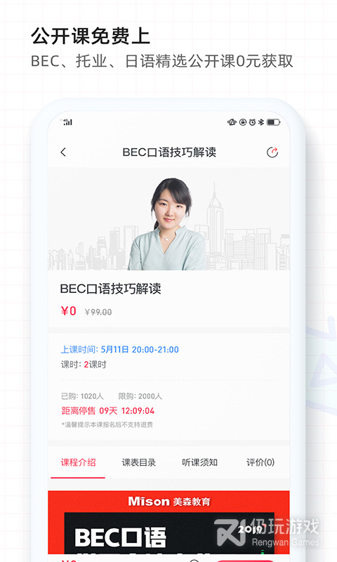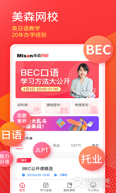 2、美森网校是一个互联网教育平台,和其他专注于考试英语的网校不同,美森网校是一个专注 “商务和职业英语”的平台,在这里有众多优秀的老师来为你上课,更有独特的教育体系,需要的赶紧来下载美森网校试试吧