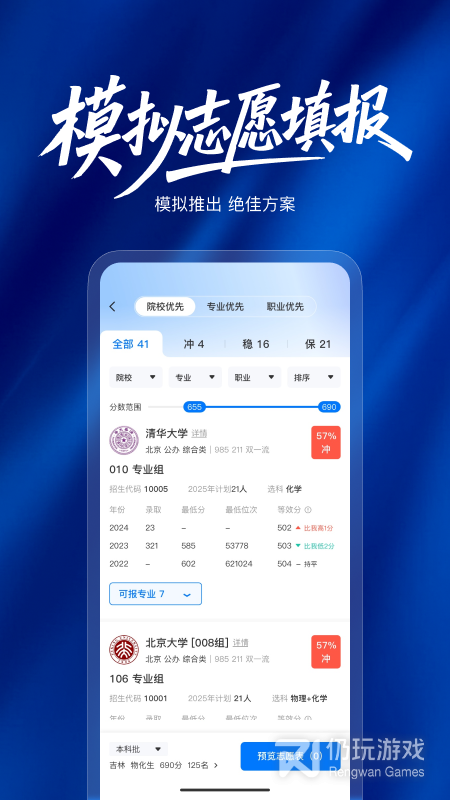 3、真实的志愿填报模拟系统,对考生所在地区的填报规则进行完全模拟,感受真实的志愿填报