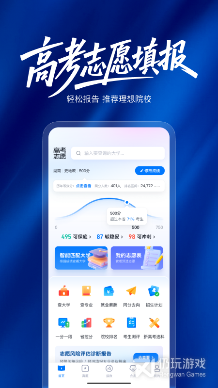 2、能够在这里一键进行智能填报,根据自己的分数来模拟,快速匹配心仪学校。