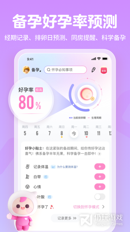 4、为你提供准确的排卵测算,根据好孕率提醒同房时间,还有每日备孕知识分享及备孕食谱推荐,助你早日怀上宝宝。
