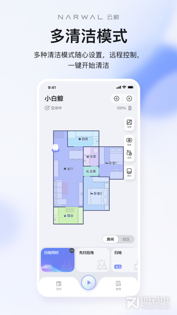 云鲸智能是一款非常实用的智能扫地机控制软件,用户们可以通过这款软件来远程操控智能扫地机器人,还可以制定不同的清洁路线,查看机器人工作状态