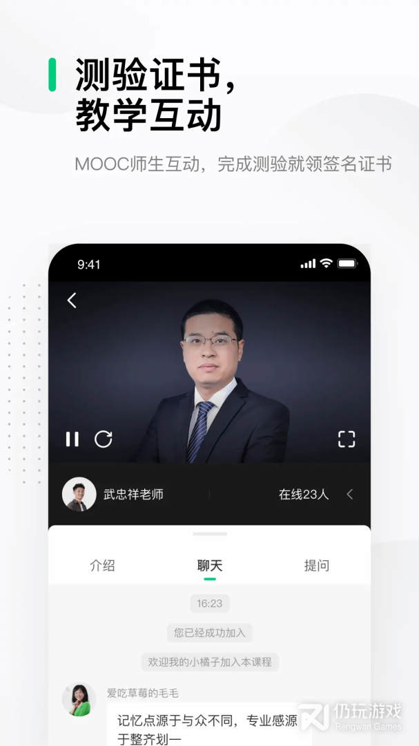 中国大学mooc是中国最好、最大的在线汉语学习平台。MOOC拥有最好的教师和教学资源。它有定期的教学和在线考试。也可以拿到相应的证书,错过自己喜欢的大学。不要错过MOOC,这是超级学习软件,可以让你感受到名牌大学的学习氛围。推荐给所有热爱学习的人。