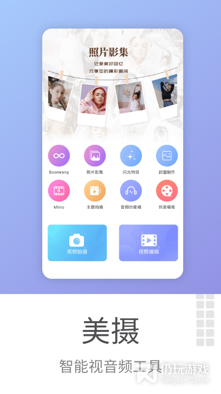 3、一部电影需要三部分内容:片头、正片、片尾。三者可以相互拼接成为一段,每一段视频的剪辑侧重点又各有不同。在片头和片尾方面,需要的是背景音乐和华丽的效果,而在内容方面,则需要的是显得影片或色彩斑斓或波澜壮阔的滤镜效果。于是,美摄团队决定加入三种主要功能,一个是剪辑——片头、正片、片尾无缝衔接。一个是主题效果,使得片头和片尾可唯美可诙谐,并可以添加字幕。最后一个则是影片美化,分为人物美化和景物美化两种。人物美化意味着在拍摄过程中能够直接看到自己美化过的皮肤,同类产品只有美摄可以做到。而景物美化除了意味着能够直接在拍摄过程中添加滤镜,还配备鱼眼镜头功能,增添趣味。当然,实际上,美摄的第一款产品功能还是比较多,这也关乎第二个原因,美摄团队希望先能做出一款符合大众需求的产品,接着开始致力于细分领域,比如母婴或是旅行这种垂直品类视频产品的研发