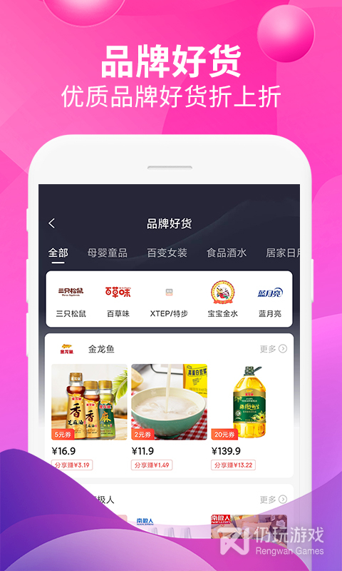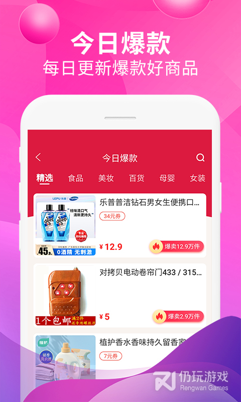 2、在这个购物平台里有很多的高质量商品,商品的种类很多,需要买的东西直接搜索就可以,购物之前可以领取面额超大的优惠券,能够帮助你省很多钱