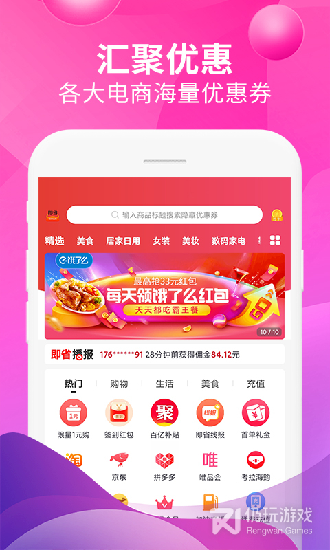 即省App是互联网+时代的商业整合运营商,是一家聚合所有电商优惠信息的推广平台,不管你是用淘宝、天猫、拼多多,还是京东、苏宁易购、考拉海购,不管是吃喝玩乐,还是衣食住行,都可在即省App实现VIP式的购物省钱。