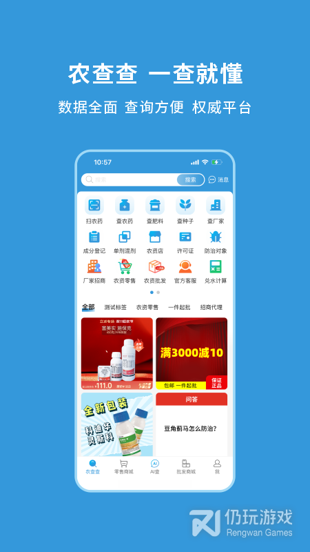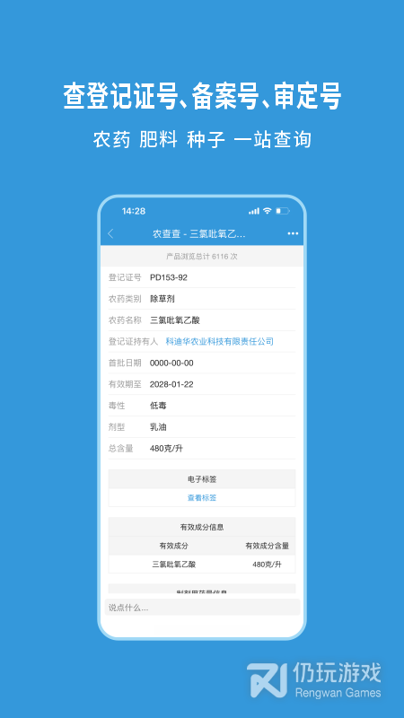 这是一款农药登记证查询、肥料登记证查询、种子审定号查询、农资企业查询的APP,数据同步于官方数据。买农资,卖农资,就用农查查。