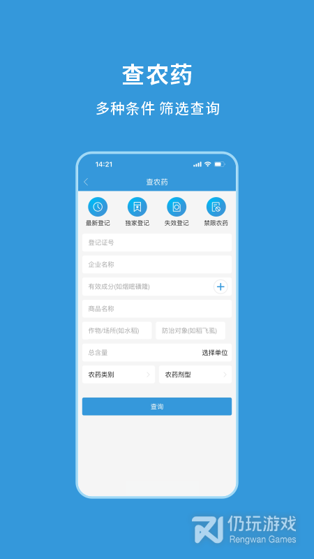 根据登记证号、有效成分、病虫害、登记作物 等查询农药产品信息。