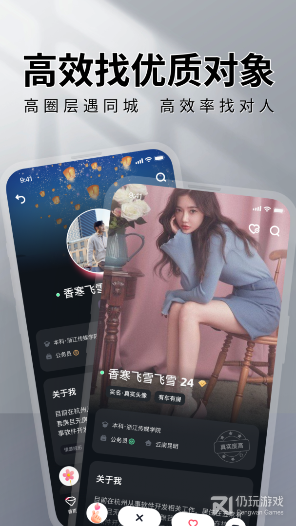4、真实严肃的交友平台,实名认证、真人认证、房产、车辆、学历等认证确保每一位用户的身份真实
