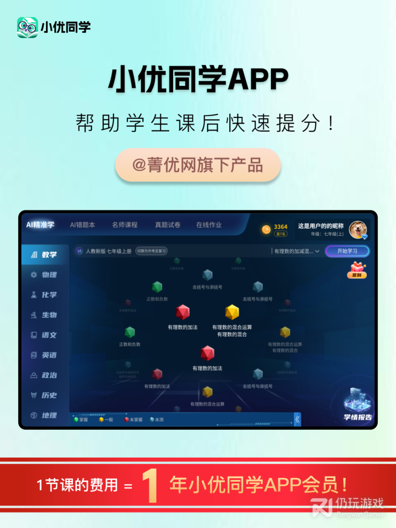 3、小优同学,这是一款超级不错的手机学习软件,用户可以在这里去进行各种题型的举一反三,也可以在这里去进行个性化的智能错题本,所以用户在这里去进行学习的话还是十分的方便的,另外平台上面还有青少年的模式,孩子学习可以更加的专注哦,家长也可以更放心