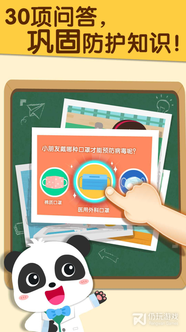1、益智问答设计12项问答,巩固宝宝的防护知识