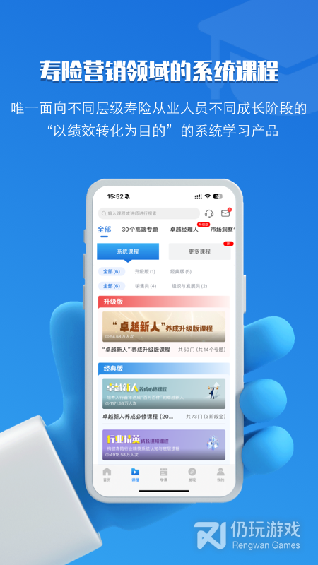 国内寿险首款专业性、体系化的一站式学习平台,结合线下面授班课程提供经典、不受时空限制的在线学习方式,力争成为从业人员身边随时随地可触达的“培训部”;平台课程内容聚焦绩优人员培养、中高端客户开拓、行业精英修炼,以及卓越组织打造等专题,以“窄而深”的方式分享可复制的实战型内容,帮助学习者建立“正确工作、正确思考、正确销售、正确学习、正确生活”重要观念,以引领每一位追求专业化经营人员走向辉煌成功之路。