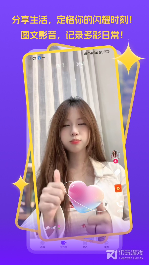 2、一键快速配对,快速语音聊天、互发生活照、分享个性短视频、实时互动,轻松畅聊