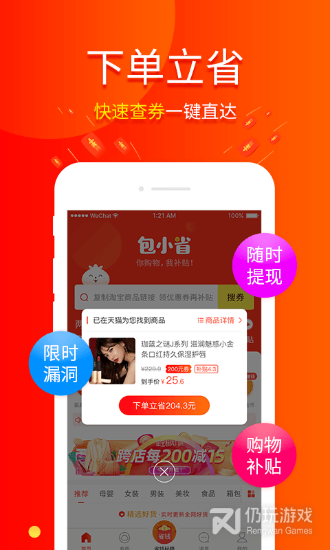 1、包小省商品种类超多,还有超多优惠券免费领取使用,包小省购物还可以有返利,买的越多返的就越多,可以花最少的钱买到最心仪的商品