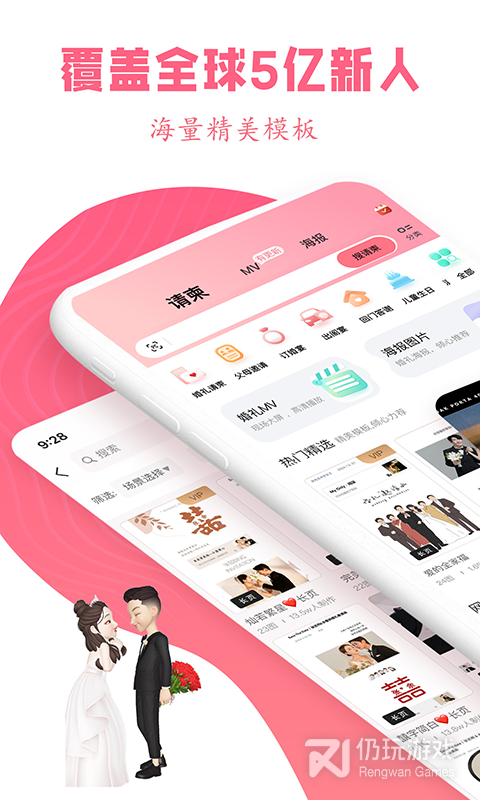 婚礼电子请柬、结婚请柬、宝宝满月、电子邀请函、电子请帖、喜帖、同学聚会、生日贺卡、老人寿宴、乔迁等海量模板。