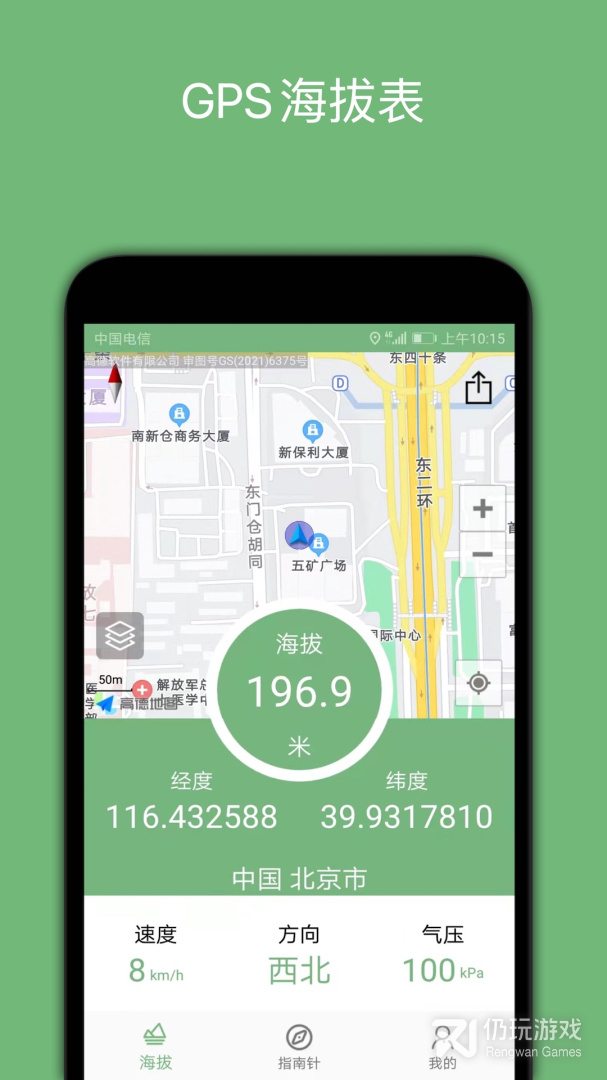 3、GPS海拔表是专门为用户打造的手机定位软件,在这里用户可以使用软件在线进行海拔高度信息测试功能,还可以通过软件准确的定位方向,使用软件即可显示当前的压力值,随时进行精准的测量海拔功能