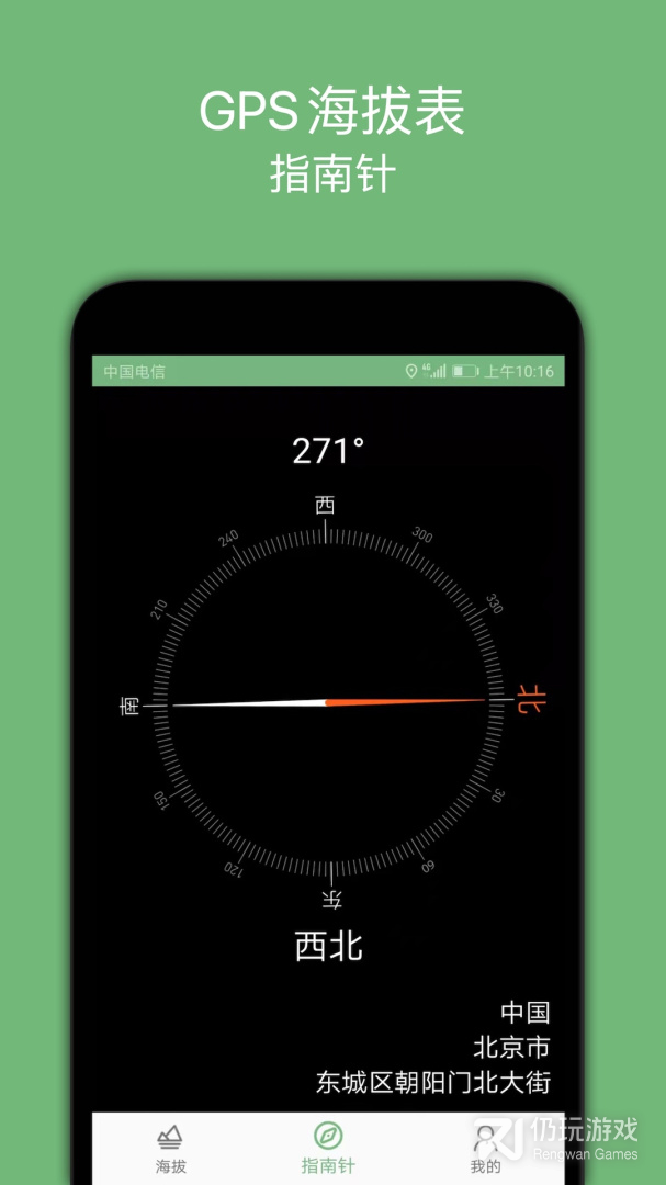 2.指南针:准确实时显示当前方向。