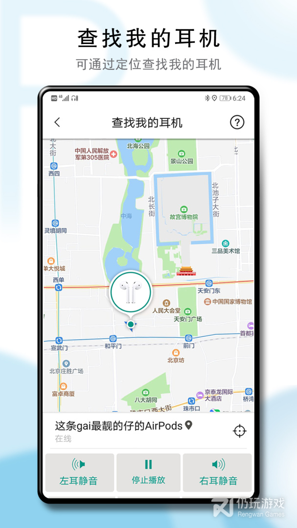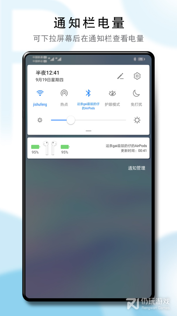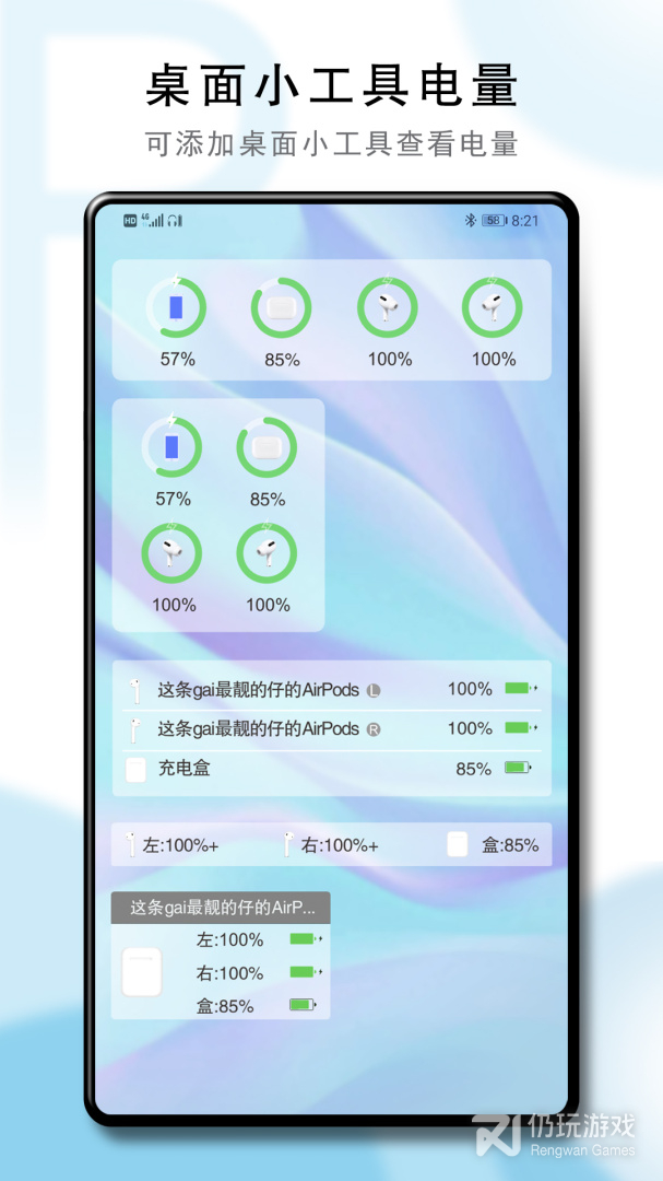 1、用户在耳机连接状态下,打开APP能很方便的查看AirPods蓝牙耳机的电量,也可以由用户的喜好设置相应的功能控制