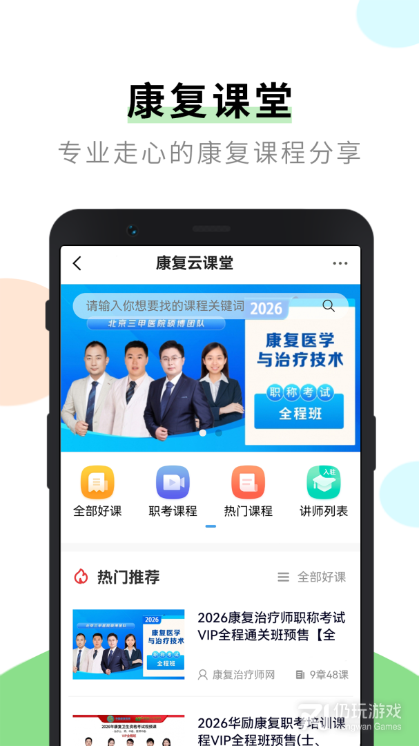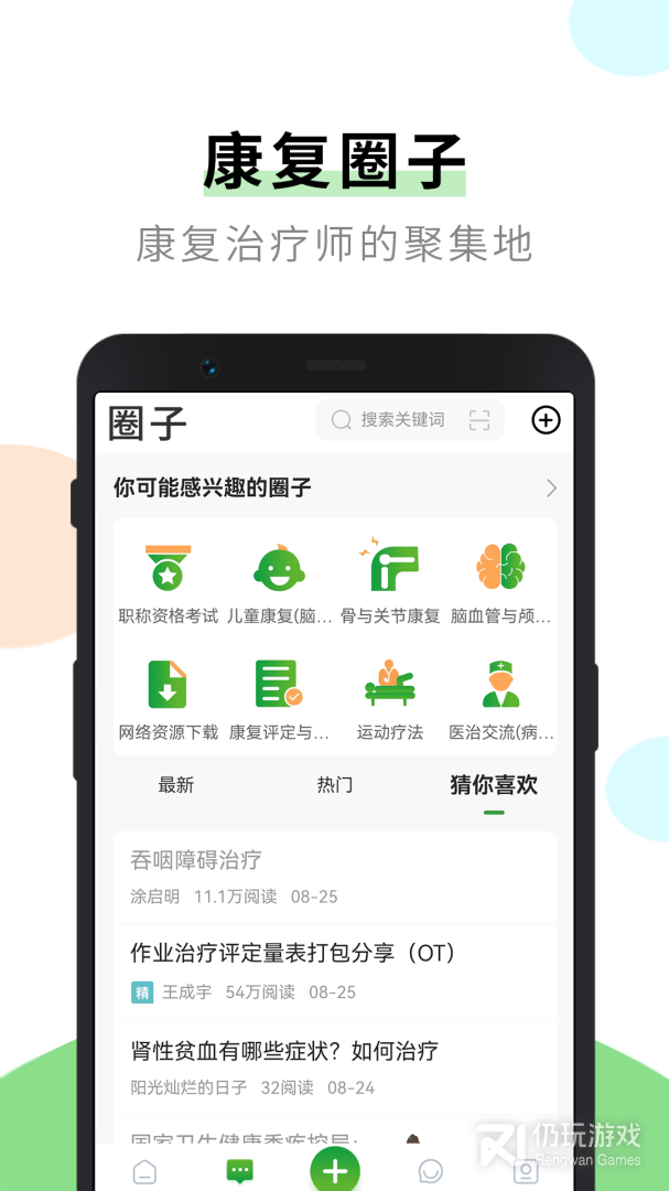 1、康复治疗师网是目前国内最大型,专业,权威的医学交流,技术分享平台,以康复训练师的内容为主,不仅有着丰富的知识内容,名家讲坛,还能参与各种培训,技能强化课程等等,打造独特的医师朋友圈子,让大家能够拥有更好的互动性,现在下载康复治疗师网就能参与其中,一起学习分享啦