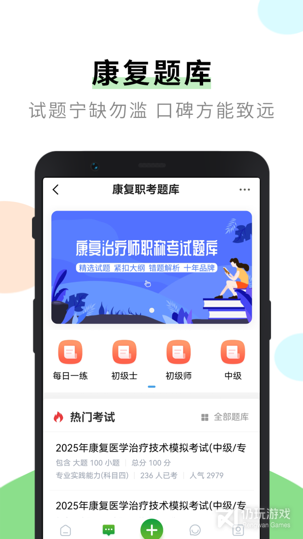 2、康复治疗师网是一个康复医学交流服务应用,软件拥有讨论交流、资源分享、互动问答、在线模拟考试等等诸多功能特色