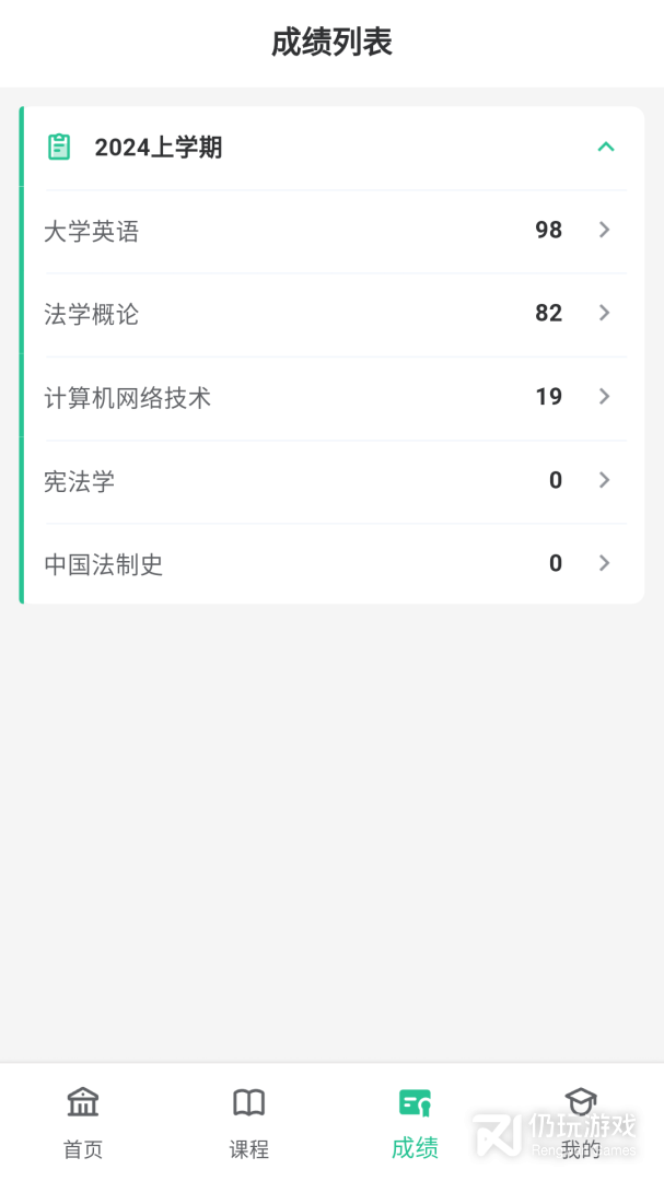 3、提供详细的学习成绩,支持按照学期查看成绩的信息,查看每一学科成绩教学。