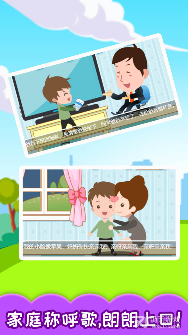 小兔子乖乖,把门开开!宝贝们快来学称呼喽,还有好听的童谣!宝宝刚刚开始学说话,大家是不是都争先恐后的让TA来叫自己呢?那么,宝贝学说话就从学称呼开始吧!乖宝宝学称呼,这里真实图文结合,配合朗朗上口的童谣,精彩的介绍,标准童音跟读,让宝宝立马互动起来!