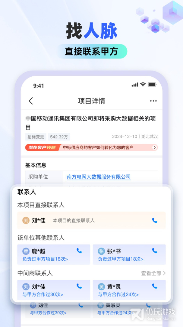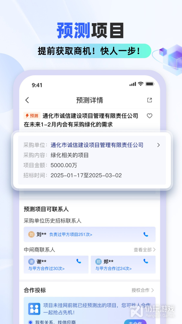 3、企业用户可以随时在线寻找新的商机和资源,全网海量全新的招标信息资讯实时同步更换,多种关键词搜索让你快速找到自己想要的信息资源,获得更多商机