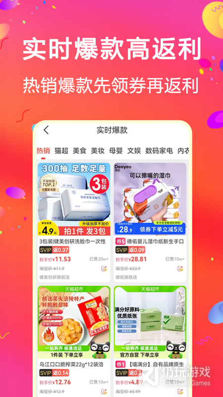 2、在便宜的基础上保证质量,还有每天上新9块9包邮商品,以白菜价享受更好的商品,更有大牌返商品返利高达90%,让你轻松购买大牌好货