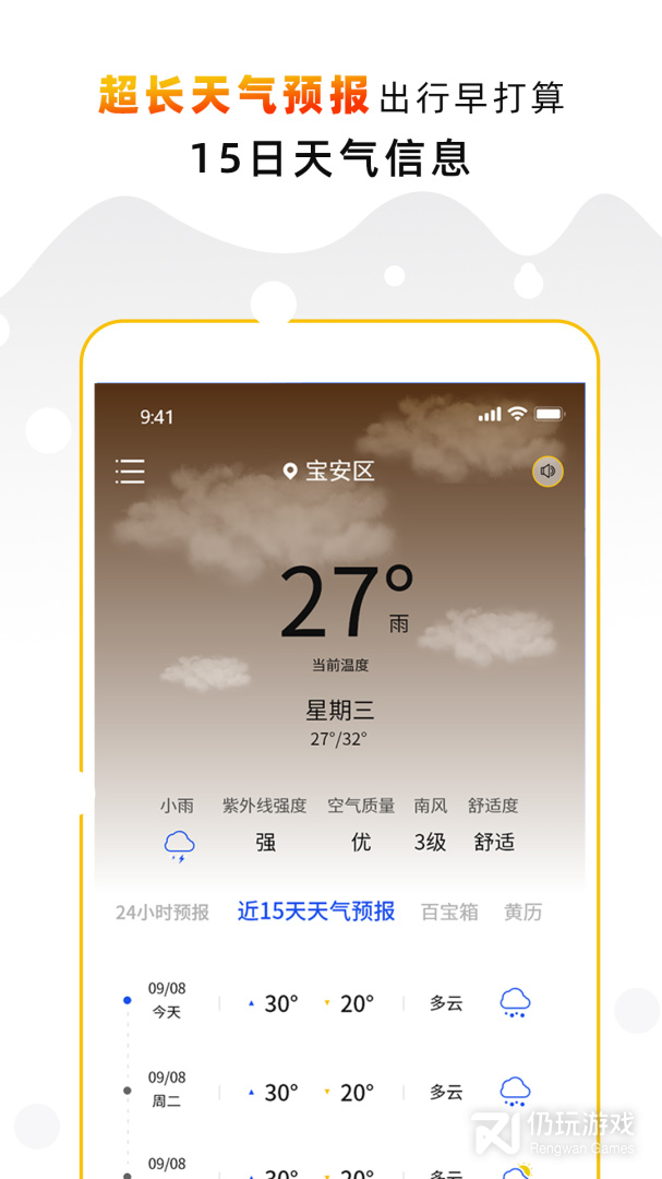 2、不仅可以查看当天的天气,还可以看到未来15天的天气信息,也能为你及时预警