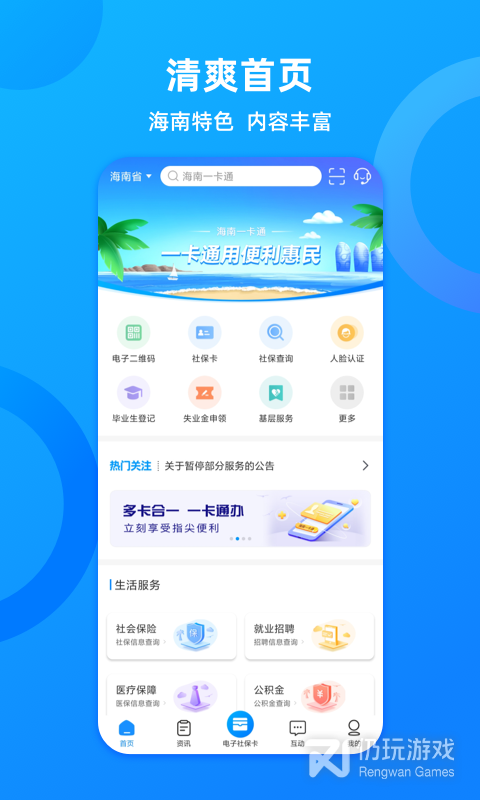 5、可以为海南本地的老百姓们提供各种便捷,在线就可以申领你的社保卡